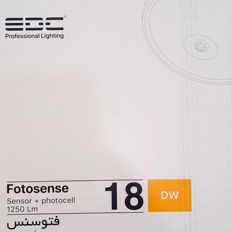چراغ سقفی سنسوردار فتوسنس EDC، با توان ۱۸ وات و سنسور هوشمند، در فضاهای داخلی پخش نوری یکنواخت و کارآمد دارد.